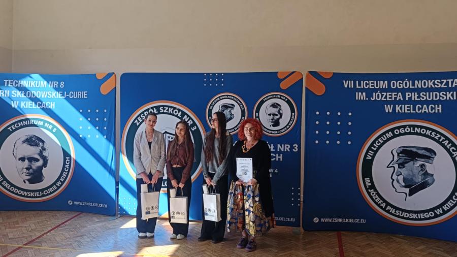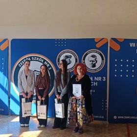 23.09.2025 odbyło się uroczyste wręczenie nagród dla uczniów biorących udział w XIII Grze Miejskiej z okazji Europejskiego Dnia Języków. Nasze uczennice ; Anna Banasik, Wiktoria Pedrycz, Lena Sowińska i Amelia Schodnik zdobyły I miejsce. Gratulujemy!