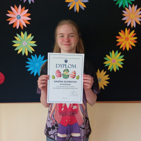 Sandra Głowacka z kl. 6 b zdobyła wyróżnienie w międzyszkolnym konkursie plastycznym "Żołnierska Ozdoba Wielkanocna" organizowanym przez Centrum Przygotowań do Misji Zagranicznych w Kielcach. Uczestnicy konkursu musieli stworzyć wielkanocną ozdobę świąteczną, która nawiązywałaby do wojska.