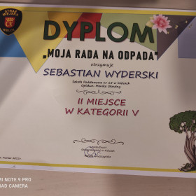 Sebastian Wyderski z kl. 7 c zdobył II miejsce w konkursie "Moja Rada na Odpada". Konkurs został zorganizowany przez Straż Miejską w Kielcach. Sebastian, korzystając z wybranych programów graficznych, wykonał ulotkę informacyjną pod hasłem: "Psie nieczystości plagą ludzkości". Broszurka miała zwracać uwagę na konieczność sprzątania po swoich pupilach.