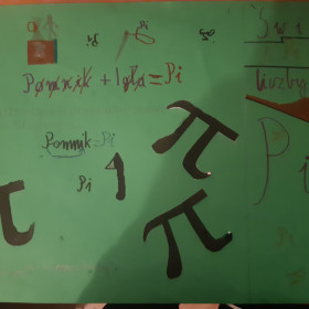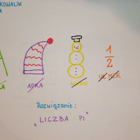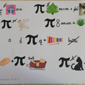 Uczniowie wykonali rebus, w którym główną rolę grała bohaterka naszego święta, czyli Liczba Pi.