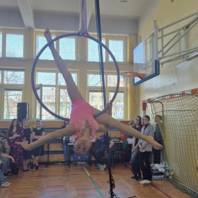 W oczekiwaniu na wyniki nasz czas umilił pokaz tańca na szarfach i kole w wykonaniu uczennic klas 3: Lili Dereniewicz i Emilki Kustry oraz taniec Oliwki Charuto. Po długich obradach wyłoniono zwycięzców.