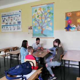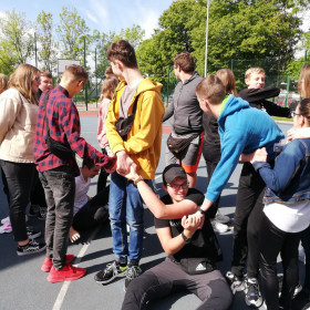 W obchody Dnia Dziecka włączyli się również nasi wolontariusze - Abbas, Maria i Vicky. Chociaż w ich krajach nie ma takiego święta, chętnie przygotowali zabawy dla naszych uczniów. Korzystając z pięknej pogody bawiliśmy się na boiskach : w przekazywanie impulsów elektrycznych, malowanie portretu, koło do rozplątania, ninje czy "mixer", toaster i " washing machine". Wszystkie te zabawy były nieznane naszym uczniom ale dostarczyły wiele radości i śmiechu.