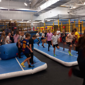 30 września klasa 5a spędzała DZIEŃ CHŁOPAKA na sportowo w „Parku Trampolin Happy Jumper” w Galerii Echo. Główną atrakcją parku są trampoliny, na których uczniowie wykonywali różnego rodzaju akrobacje oraz odkrywali swoje nowe umiejętności sportowe, które zapewniły im mnóstwo radości i emocji.