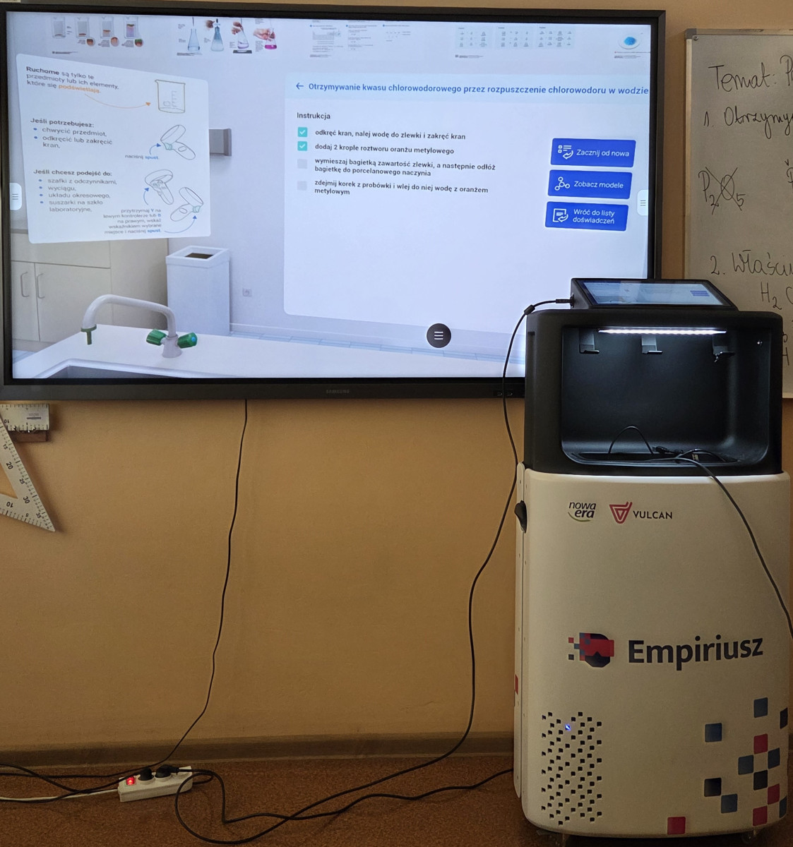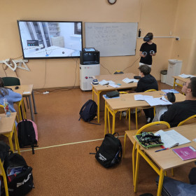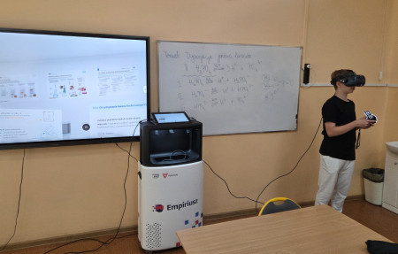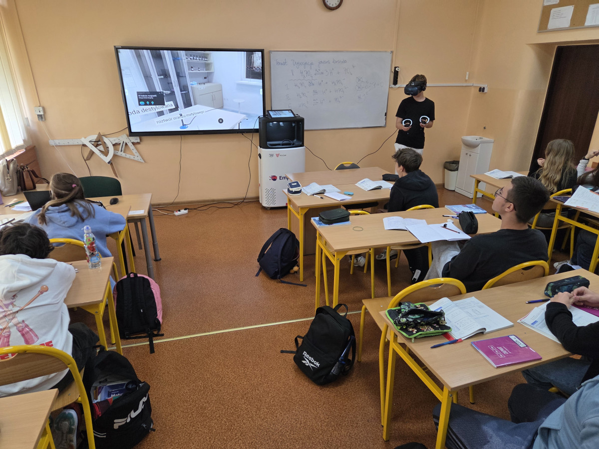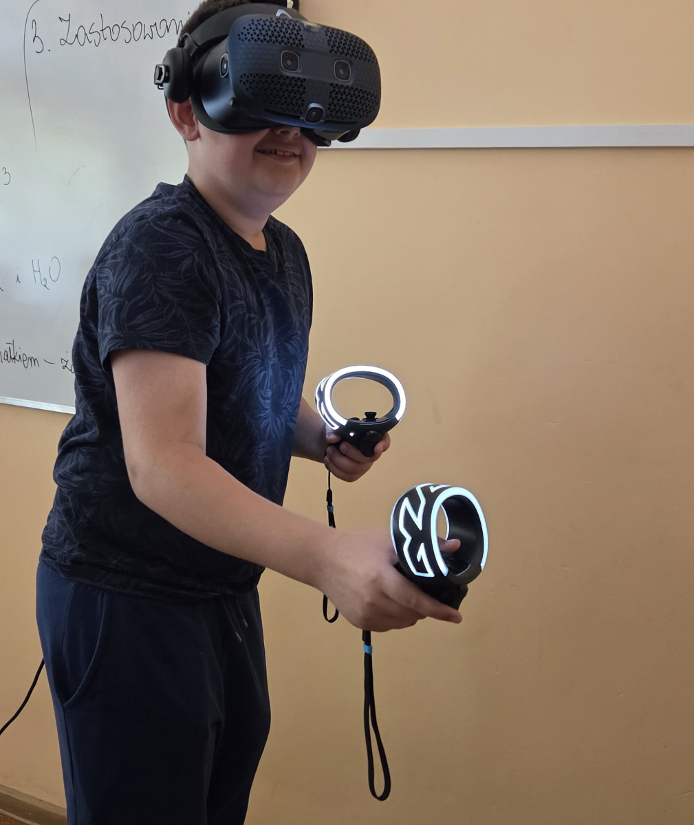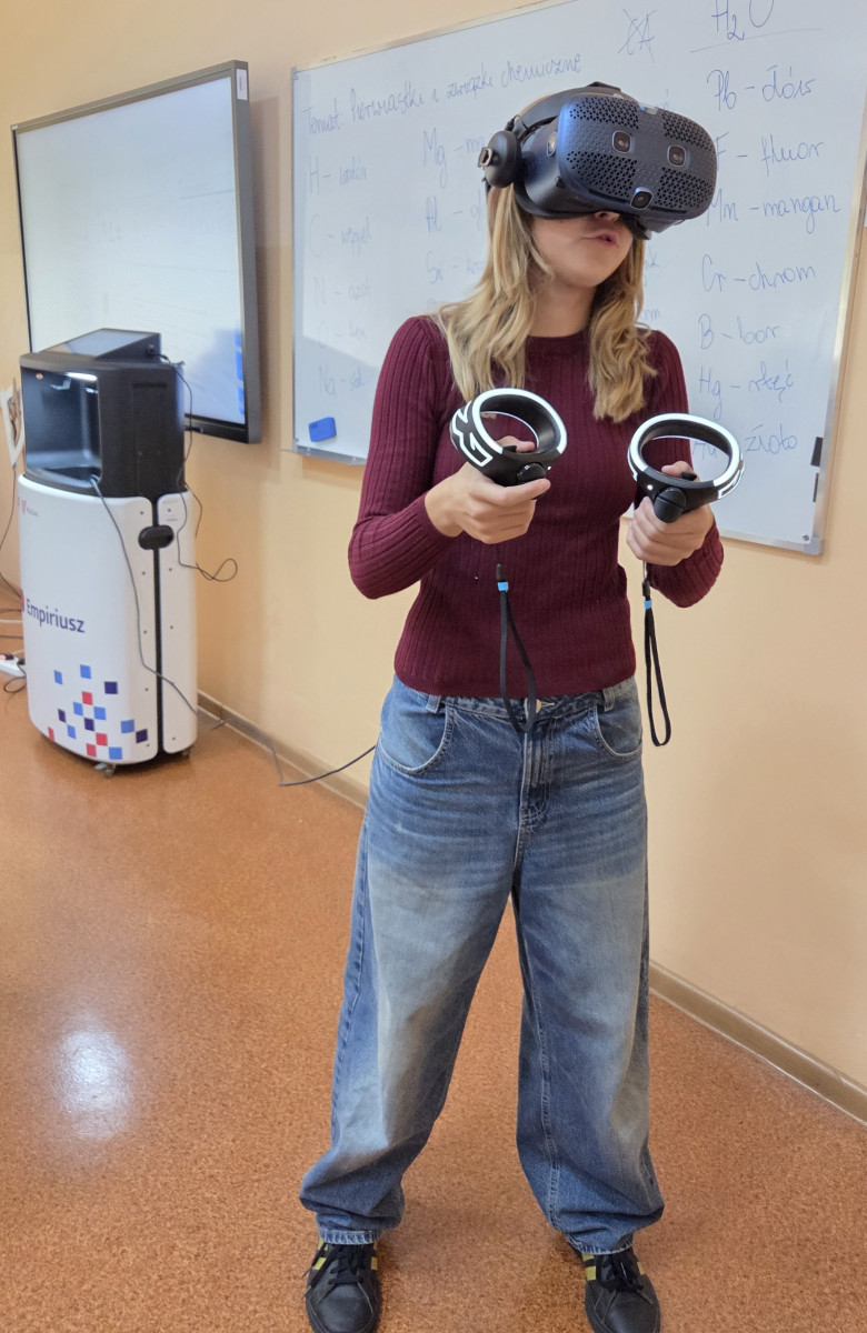 W nowym roku szkolnym nauka chemii jest kontynuowana przy pomocy Wirtualnego Laboratorium Empiriusz. 🧪 Dzięki nowoczesnym rozwiązaniom - używając okularów VR oraz kontrolerów, uczniowie w bezpieczny sposób wykonują obowiązkowe doświadczenia w klasach 7 i 8 🥼🥽🧤 po których nie musimy sprzątać rozlanych odczynników chemicznych ani potłuczonego szkła 🫣 A za oknem wirtualnej rzeczywistości stoi pomnik samej Marii Skłodowskiej-Curie. Będziemy odwiedzać Ją częściej!