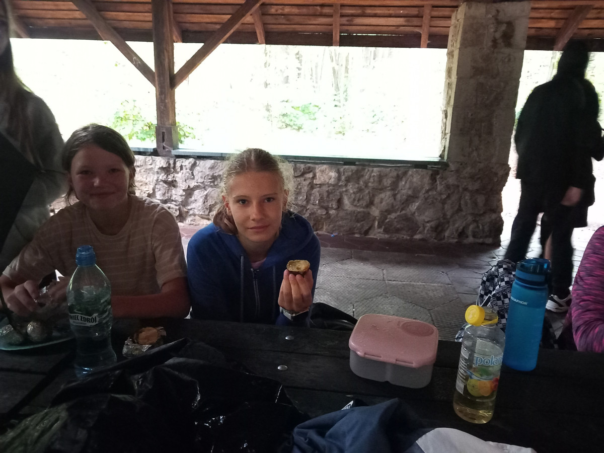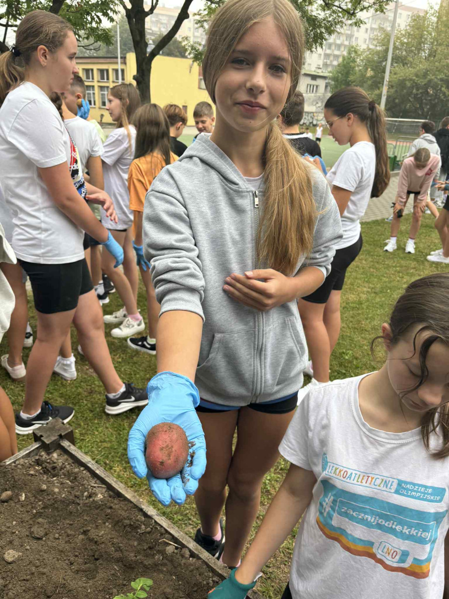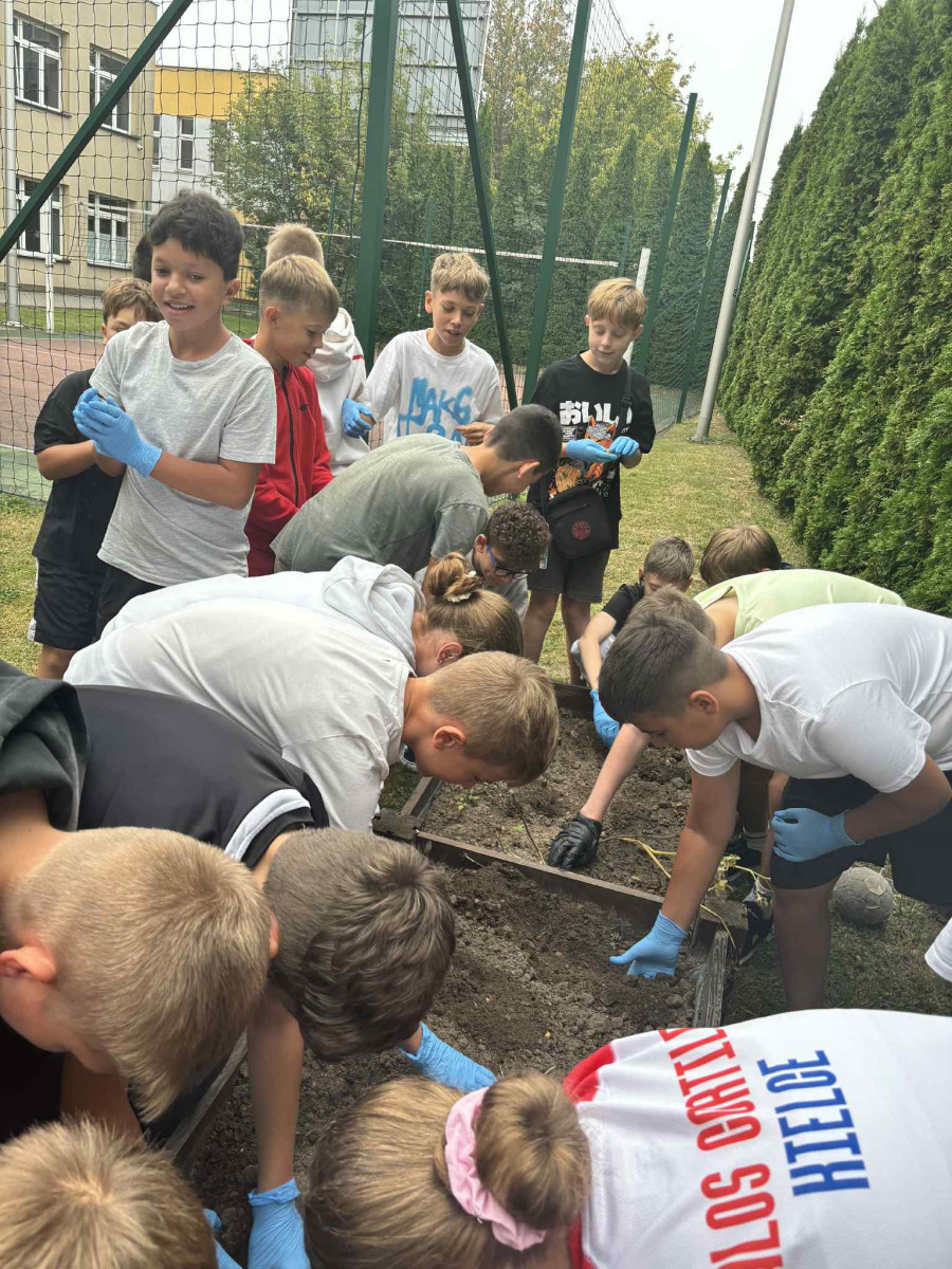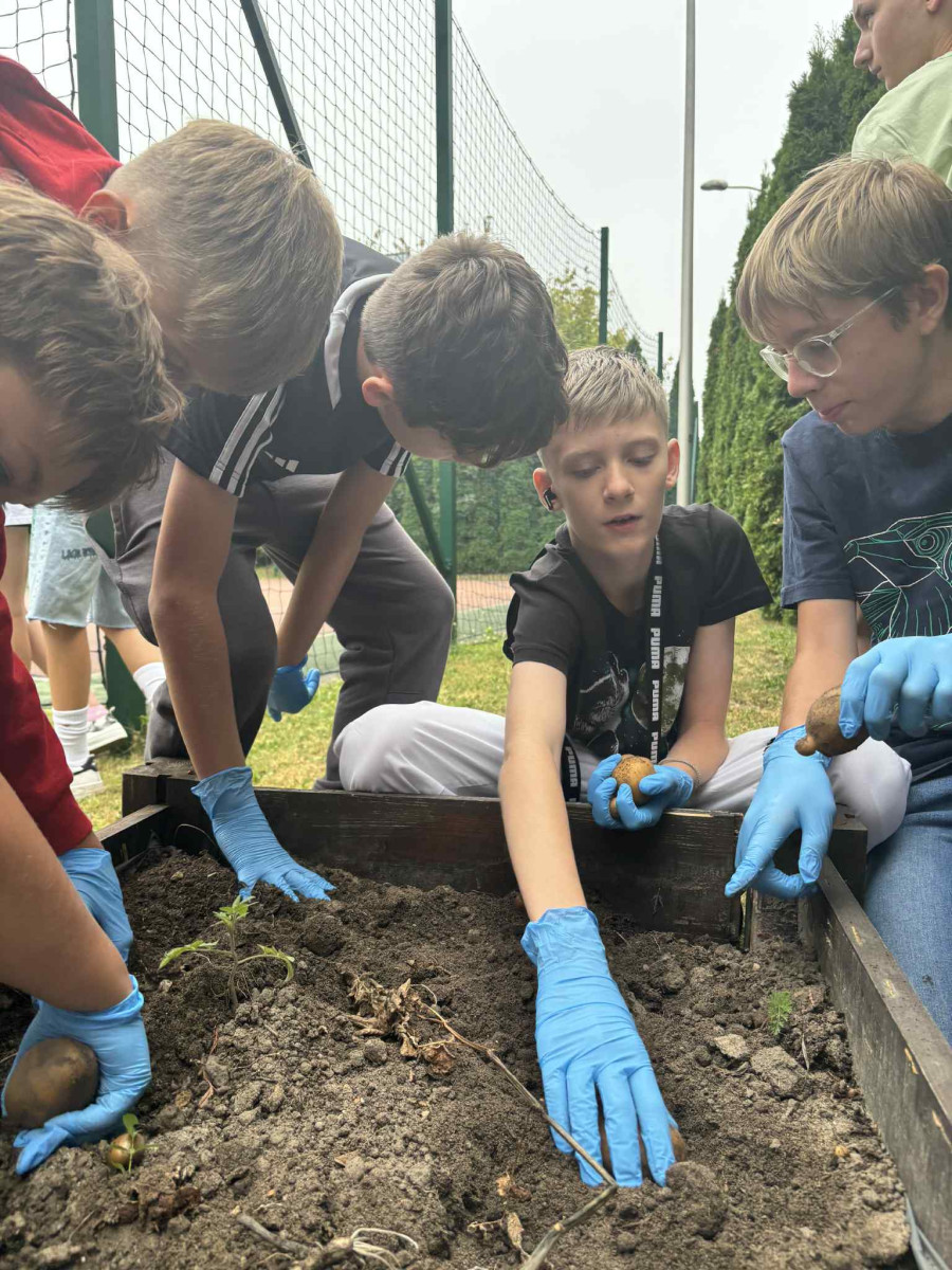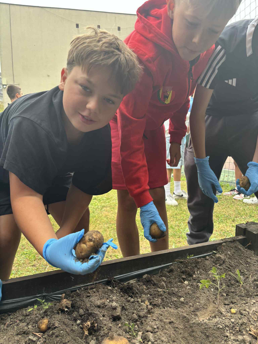 Uczniowie klas VI świętowali "Dzień Pieczonego Ziemniaka". Tradycja ta rozpoczęła się już pod koniec roku szkolnego 2024/2025, kiedy to uczniowie posadzili ziemniaki. Teraz nadszedł czas na klasowe wykopki. Z tej okazji uczniowie wybrali się na Stadion w Kielcach, gdzie mogli rozpalić ognisko i upiec własne ziemniaki. Mimo deszczowej pogody atmosfera była wspaniała, a wspólne pieczenie dostarczyło wszystkim wiele radości. Oprócz ziemniaków upieczone zostały także kiełbaski, które dodały spotkaniu wyjątkowego smaku.