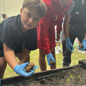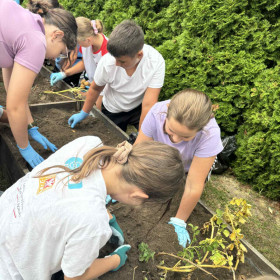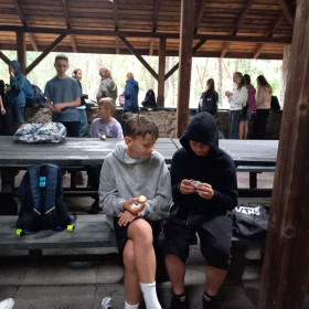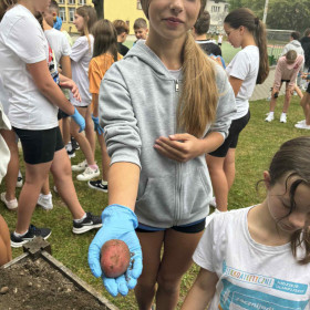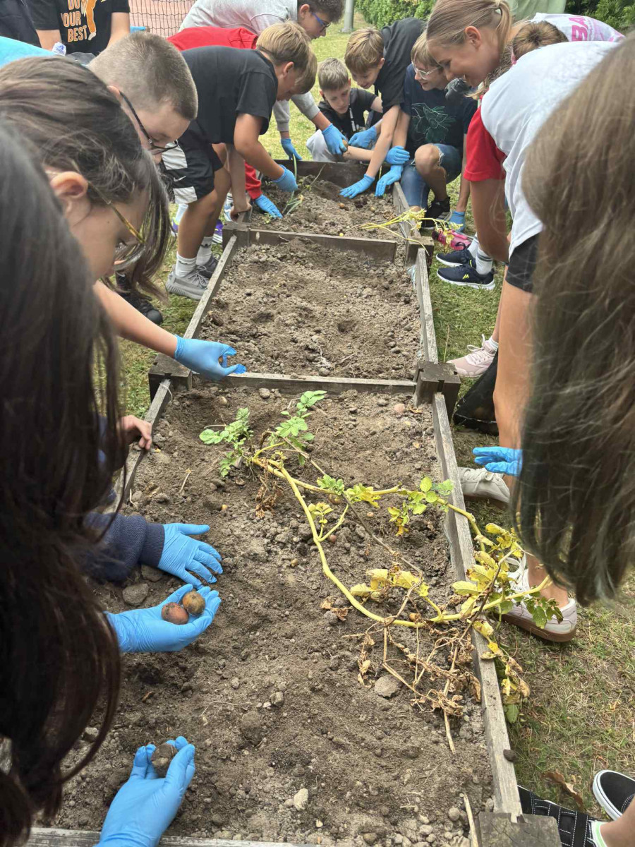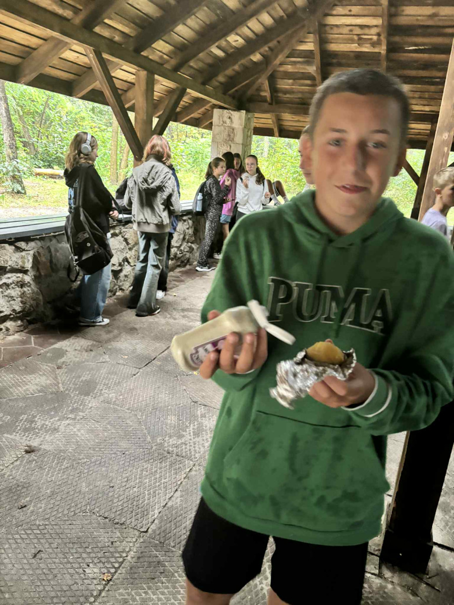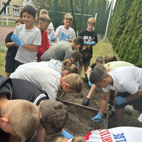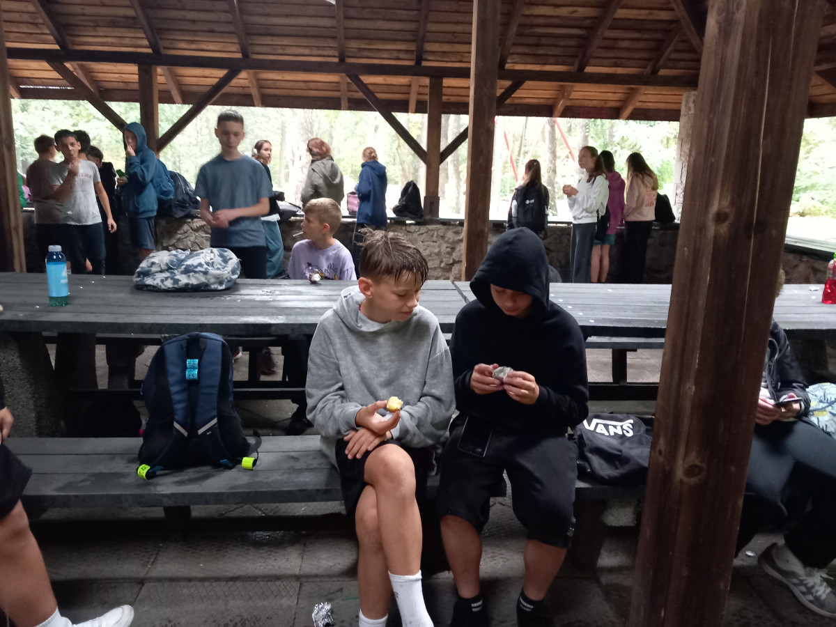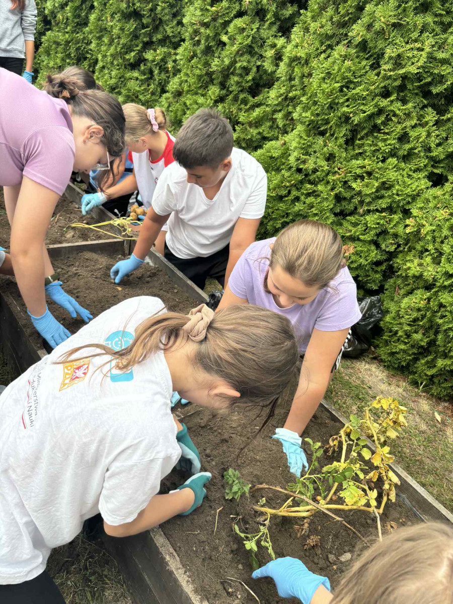 Uczniowie klas VI świętowali "Dzień Pieczonego Ziemniaka". Tradycja ta rozpoczęła się już pod koniec roku szkolnego 2024/2025, kiedy to uczniowie posadzili ziemniaki. Teraz nadszedł czas na klasowe wykopki. Z tej okazji uczniowie wybrali się na Stadion w Kielcach, gdzie mogli rozpalić ognisko i upiec własne ziemniaki. Mimo deszczowej pogody atmosfera była wspaniała, a wspólne pieczenie dostarczyło wszystkim wiele radości. Oprócz ziemniaków upieczone zostały także kiełbaski, które dodały spotkaniu wyjątkowego smaku.