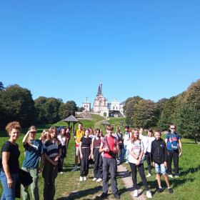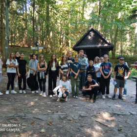 Klasy ósme postanowiły w tym roku uczcić Dzień Chłopaka rajdem na Święty Krzyż. Pogoda dopisała, humory również, więc wspinaczka na szczyt od strony Nowej Słupi nie sprawiła nam trudności. Po drodze uczniowie wzięli udział w grze terenowej - musieli m.in. ułożyć z dowolnych materiałów nazwisko naszego patrona, przedstawić wybraną legendę związaną z naszym regionem i oszacować ilość orzechów w pudełeczku.