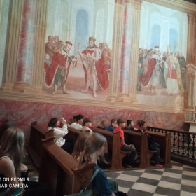 Po ciepłym posiłku, który zjedzono w klimatycznych podziemiach klasztoru, zwiedziliśmy pod opieką przewodnika opactwo łysogórskie.