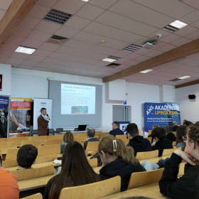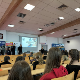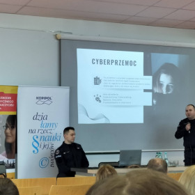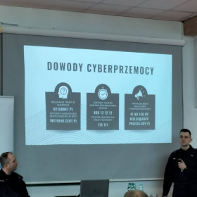 1. Prawne Aspekty Cyberprzestępczości - Funkcjonariusze Komendy Wojewódzkiej Policji w Kielcach oraz Centralnego Biura Zwalczania Cyberprzestępczości omówili temat zagrożeń występujących w cyberprzestrzeni oraz profilaktyki bezpieczeństwa w sieci.