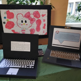 • Każda klasa przygotowała papierową makietę komputera, na którego ekranie umieścili jedną z zasad bezpiecznego zachowania w internetowej sieci. Prace zostały zaprezentowane na szkolnej wystawie i każdy może się zapoznać z zamieszczonymi tam informacjami :)