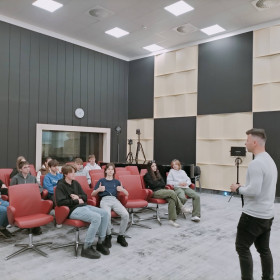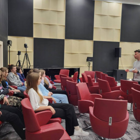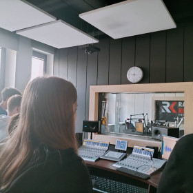 Najpierw wybrali się do Centrum Edukacji Medialnej, tam poznali pracę dziennikarzy radiowych, zwiedzili studio, w których realizowane są audycje oraz zapoznali się z historią mediów od zarania dziejów aż po czasy dzisiejsze. Na koniec zwiedzili interaktywną wystawę i próbowali swoich sił w świecie mediów wcielając się w rolę prezentera telewizyjnego.