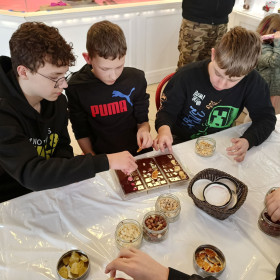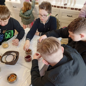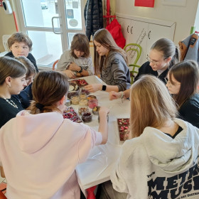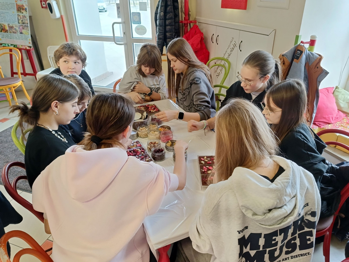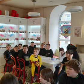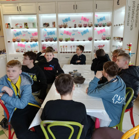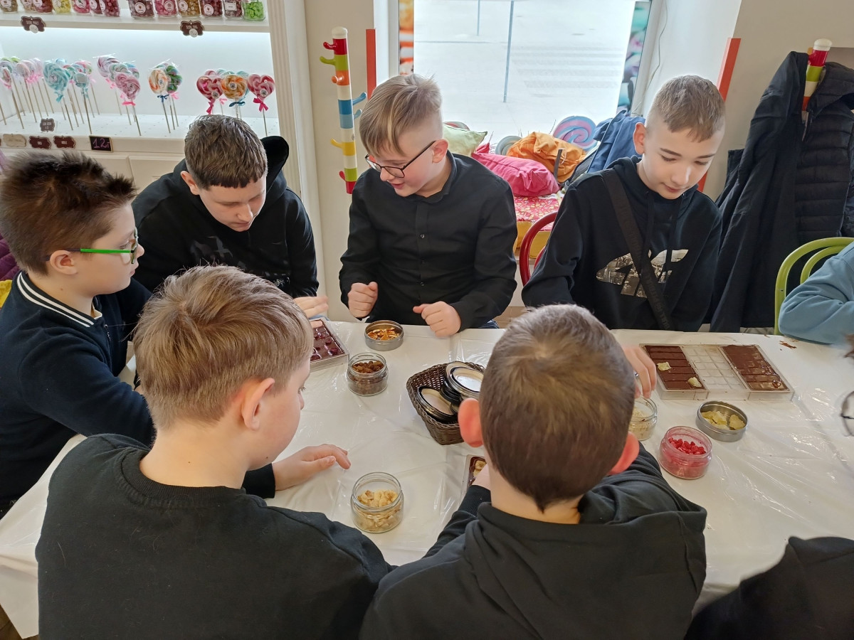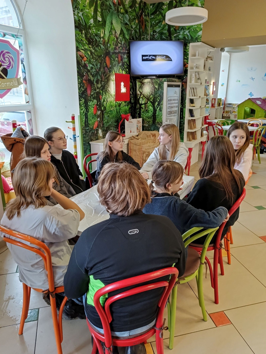 7 marca 2025 r. z okazji zbliżającego się Dnia Kobiet uczniowie klasy 6b udali się do Manufaktury Słodyczy „Magia Karmelu” na warsztaty czekoladowe „Od ziarna do tabliczki”.