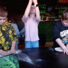 W pizzerii Głodna Małpa uczniowie poznali ciekawostki związane z pochodzeniem pizzy neapolitańskiej oraz mieli okazję samodzielnie uformować pizzę i nałożyć wybrane składniki. Przygotowane w ten sposób danie trafiało do pieca. Potem wszyscy mieli wielką ucztę czyli pyszną pizzę, a do popicia wodę z miętą i cytryną.