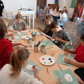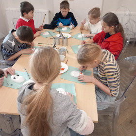 Celem warsztatów w Pałacu było poznanie historii powstania maski weneckiej. Zajęcia były bardzo ciekawe oparte krótkim wykładem. Najbardziej podobało nam się malowanie gipsowych masek, które mogliśmy zabrać ze sobą.