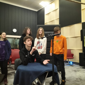 Jeszcze przed ósmym marca, rankiem w środę, wybrali się na pierwsze zajęcia do Centrum Edukacji Medialnej przy Radio Kielce. Zwiedzili studia nagraniowe polskiego radia, zapoznali się z pracą dziennikarzy "od kuchni", a nawet sami nagrali krótką audycję!