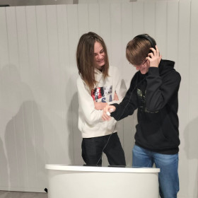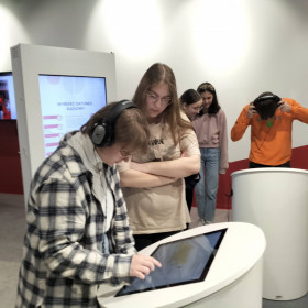 Po wizycie w radio zwiedzili multimedialną wystawę, gdzie odbyli podróż przez historię mediów - zaczynając od wynalazku Guttenberga, a kończąc na wynalazkach naszych czasów. To była świetna lekcja i uczniowie chętnie spędziliby tam kolejne godziny!