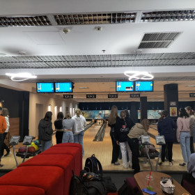 Jednak niemal tuż za rogiem czekał już kolejny punkt programu - wspólna zabawa w kręgielni :) I tu emocji było moc! Jedni powoli się rozkręcali, a inni niemal od razu strącali po 10 kręgli na raz podbijając tym samym swoją pozycję na tablicy wyników :D Jednak nie rywalizacja punktowa tu była najważniejsza, ale wspólnie spędzony czas i dobra zabawa.