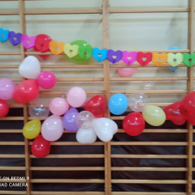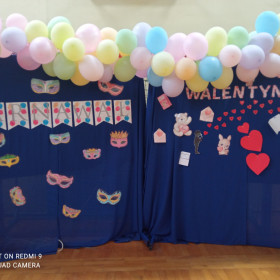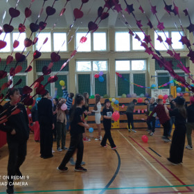 Klasy 4-8 wzięły udział w dyskotece walentynkowej. Sala gimnastyczna, którą wspólnie udekorowaliśmy kolorowymi balonami oraz serduszkami, zmieniła się na jeden wieczór w prawdziwą salę balową. Wszyscy świetnie bawili się na parkiecie, a pączki lub pizza pozwalały zregenerować nadwątlone żywiołowym tańcem siły.