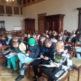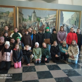 Aby dowiedzieć się więcej o niełatwej drodze Polski do niepodległości, klasa 4b wybrała się na warsztaty edukacyjne do dawnego Pałacu Biskupów Krakowskich, który stanowi oddział Muzeum Narodowego w Kielcach.W czasie zajęć uczniowie zwiedzili Sanktuarium Marszałka Józefa Piłsudskiego, gdzie mogli obejrzeć m.in.obrazy lwowskiego malarza Stanisława Batowskiego-Kaczora „Wejście Strzelców do Kielc", „Potyczka na folwarku Czarnów", a także kopię obrazu Batowskiego wykonaną w 1994 roku przez Krzysztofa Jackowskiego „Potyczka przed Hotelem Bristol", według oryginału znajdującego się w Muzeum Oręża w Kołobrzegu. Po obejrzeniu eksponatów znajdujących się w Sanktuarium uczniowie opisywali oglądane obrazy, a potem zwiedzali zabytkowe wnętrza muzeum.