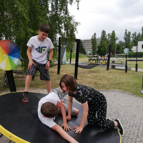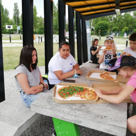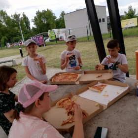 W ramach obchodów Dnia Dziecka klasa V "a" spędziła wspaniały dzień w Energetycznym Ogrodzie czyli na placu zabaw przy ulicy Olszewskiego. Po prawie godzinnym spacerze uczniowie mogli korzystać z różnych atrakcji oferowanych prze Centrum Energetyczne. Uzupełnieniem zabaw były gry przygotowane przez naszych wolontariuszy Abbasa z Pakistanu, Marii z Teneryfy i Vicky z Grecji. Odwiedził nas również opiekun naszych wolontariuszy z Regionalnego Centrum Wolontariatu, który opowiedział dzieciom o idei wolontariatu. Prezentem od rodziców była pyszna pizza. Zmęczeni ale szczęśliwi wróciliśmy do szkoły.