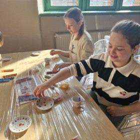 Klasy 5B i 5C udały się w marcu do MUZEUM NARODOWEGO w Kielcach na warsztaty " Krokus, Goplana i ...karczemny kielich- tajemnice wyrobów ceramicznych i szklanych". Uczniowie obejrzeli wystawę i dowiedzieli się jak powstają serwisy kawowe, skąd ich twórcy czerpią inspirację, skąd się wzięła porcelana i jakie zmiany nastąpiły w jej produkcji. Na zakończenie każdy uczestnik ozdobił swoja filiżankę. Trzeba przyznać , że nasi uczniowie to urodzeni artyści:)