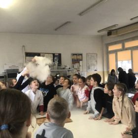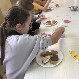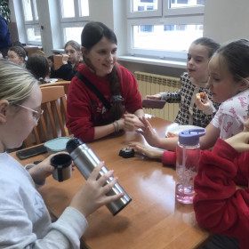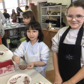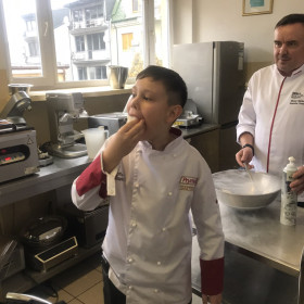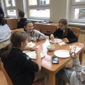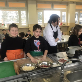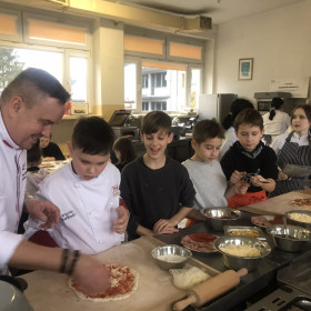 Dzięki uprzejmości jednego z rodziców, klasa IV a uczestniczyła w warsztatach kulinarnych, które odbyły się w Zespole Szkół Spożywczych. Uczniowie ozdabiali pierniki świąteczne a następnie przygotowywali pizzę, którą ze smakiem zjadali. Na koniec była jeszcze słodka niespodzianka przyrządzana w ciekłym azocie o nazwie "smoczy oddech".  Wszyscy najedzeni wrócili do szkoły. Dziękujemy.