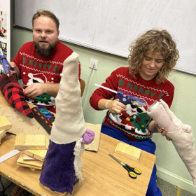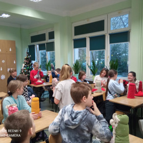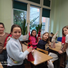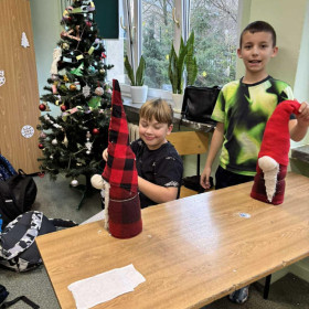 Świąteczna atmosfera w naszej szkole panuje już od 6 grudnia. Świąteczne ozdoby wykonane przez uczniów, które dekorują żywe drzewko, wprowadzają wszystkich w bożonarodzeniowy nastrój. Ale świątecznych dekoracji nigdy za wiele, więc klasy 4 b, 5 a i 5 c wzięły udział w warsztatach plastycznych, podczas których uczniowie wykonali świąteczne skrzaty. Każdy sympatyczny skrzat jest wyjątkowy, nie ma dwóch identycznych krasnali. Własnoręcznie wykonane maskotki wprowadzą teraz świąteczną atmosferę w uczniowskich domach.
