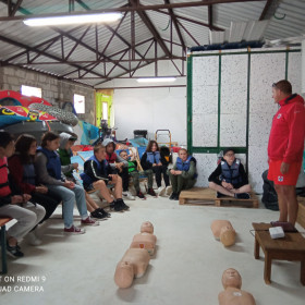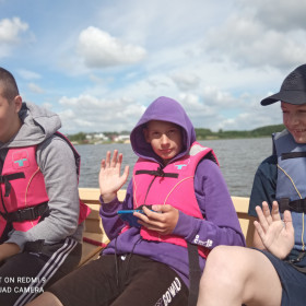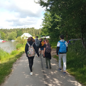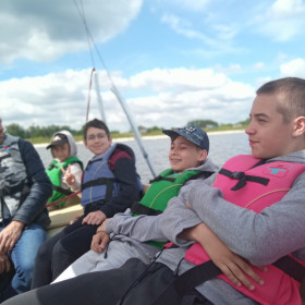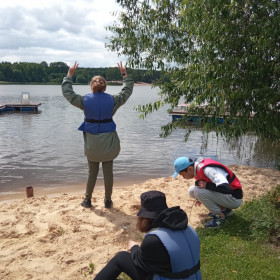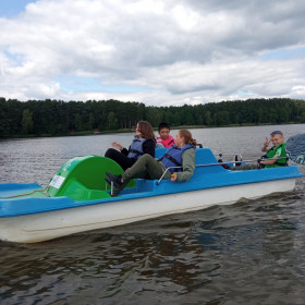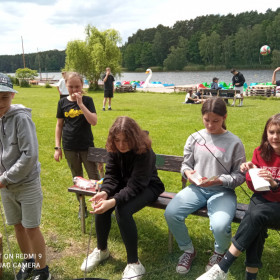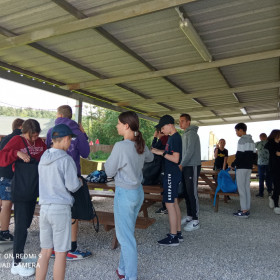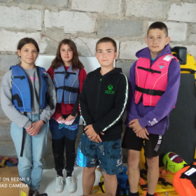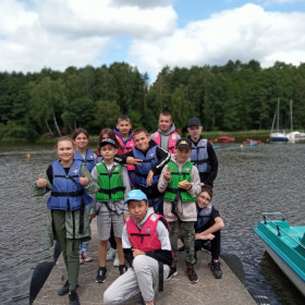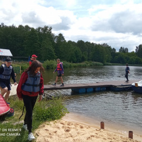 Bezpieczeństwo nad wodą jest bardzo ważne, więc cały czas pamiętaliśmy o kamizelkach asekuracyjnych. W czasie wycieczki przypomnieliśmy sobie sobie zasady udzielania pierwszej pomocy przedmedycznej; zawody, w których potem wzięliśmy udział, zweryfikowały nasze umiejętności i dostarczyły wielu emocji.