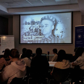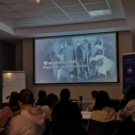 Klasa 8A uczestniczyła w lekcji historii w kieleckim Centrum Edukacyjnym IPN „Przystanek Historia". Uczniowie zapoznali się z misją i działalnością Instytutu Pamięci Narodowej. Następnie, w ramach zajęć edukacyjnych, poznali sylwetkę rotmistrza Witolda Pileckiego - żołnierza Armii Krajowej, organizatora ruchu oporu w KL Auschwitz, uczestnika Powstania Warszawskiego, a po wojnie ofiary represji komunistycznych skazanej na śmierć. W drugiej części lekcji uczniowie przygotowali plakaty poświęcone tej niezwykłej postaci.