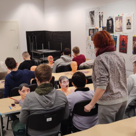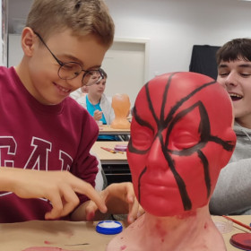 Głównym celem wyprawy były warsztaty filmowe w Narodowym Centrum Kultury Filmowej. Ósmoklasiści mieli okazję poznać tajniki pracy charakteryzatora filmowego i stworzyć maskę wybranej postaci pod kierunkiem doświadczonej charakteryzatorki pracującej m.in. na planie filmu „Quo vadis”. Uczniowie poznali również pracę realizatora dźwięku – m.in. nagrywali głos do wybranej sceny filmowej, w tym dubbing. Bardzo ciekawe okazało się również zwiedzanie wystawy „Materia kina”, które polegało na uczestniczeniu w grze interaktywnej mającej na celu zrealizowanie własnego filmu. Należało przejść przez kolejne etapy produkcji, takie jak np. wybór ekipy realizatorskiej i aktorów, zaplanowanie ruchów kamery w kolejnych scenach, opracowanie udźwiękowienia i efektów specjalnych, wymyślenie tytułu i projektu plakatu filmowego czy przygotowanie promocji filmu – a wszystko pod ogromną presją finansową, bo trzeba było bezwzględnie trzymać się ustalonego budżetu. Przekonaliśmy się, że praca producenta filmowego do łatwych nie należy!