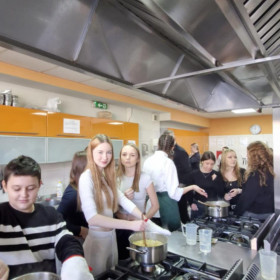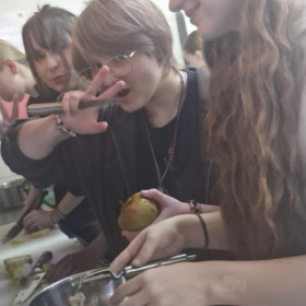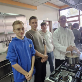22 października ósmoklasiści odwiedzili Zespół Szkół Zawodowych, gdzie wzięli udział w warsztatach Zakręć jesień na zimę. Poznawali tajniki zawodów związanych z gastronomią i własnoręcznie wykonywali pyszne przetwory z jabłek.