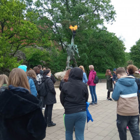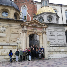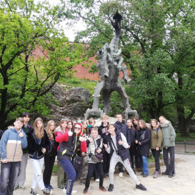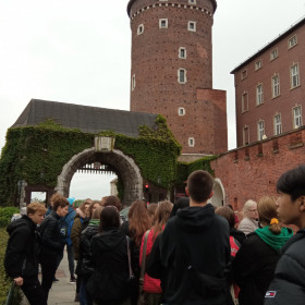 Po pożywnym śniadaniu opuściliśmy kopalnię i ruszyliśmy zwiedzać Kraków. Wraz z naszą przewodniczką podążaliśmy śladami polskich królów. Droga Królewska to najsłynniejsza trasa zwiedzania Krakowa, którą przez lata przemierzali nasi królowie po słynnej koronacji królewskiej w Katedrze Królewskiej na Wawelu. Trasa prowadzi od Wzgórza Wawelskiego po Plac Matejki i Kościół Św. Floriana i pozwoliła na poznanie głównych atrakcji Krakowa. Widzieliśmy m.in. słynnego Smoka Wawelskiego, Wawel, „Okno Papieskie”, Rynek Główny, Sukiennice; wysłuchaliśmy też oczywiście hejnału mariackiego.