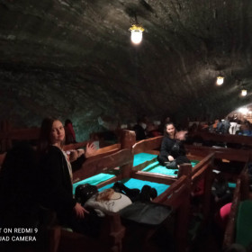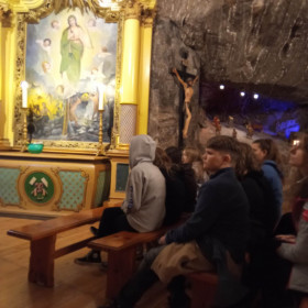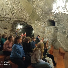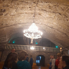 Potem udaliśmy się do Bochni, gdzie znajduje się najstarsza kopalnia soli w Polsce - miejsce o barwnej przeszłości i mikroklimacie o zdrowotnych właściwościach, które zostało wpisane na prestiżową Listę Światowego Dziedzictwa UNESCO. Nasza przygoda rozpoczęła się od zjazdu podziemną windą, który przyprawił większość z nas o przyjemny dreszczyk emocji. Pod ziemią pokonaliśmy mnóstwo stopni, schodząc wciąż w głąb kopalni. Część podziemnej trasy przejechaliśmy kolejką, płynęliśmy także podziemną rzeką. Nasz przewodnik pokazał nam komory wykute w solnych skałach, kaplice, rzeźby, a także dawne górnicze narzędzia. W prowadzeniu niezwykłej lekcji historii pomagały naszemu przewodnikowi niecodzienne postaci – polscy królowie, żupnicy genueńscy, a także mnich zakonu cysterskiego, któremu kopalnia zawdzięcza powstanie i początki swej działalności. Podziemna Ekspozycja Multimedialna, z którą się zapoznaliśmy, opowiada historię bocheńskiej kopalni, cofając się aż do czasów króla Bolesława Wstydliwego i księżnej Kingi.