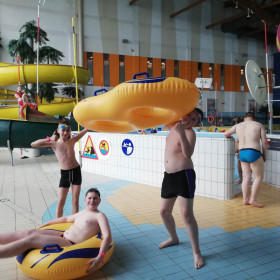 Ostatnim punktem programu naszej wycieczki był pobyt w Parku Wodnym Kraków. Korzystaliśmy tam z kilku zjeżdżalni, bawiliśmy się w rwącej rzece, próbowaliśmy swoich sił na ściance wspinaczkowej i wodnych torach przeszkód albo po prostu relaksowaliśmy się w jacuzzi.