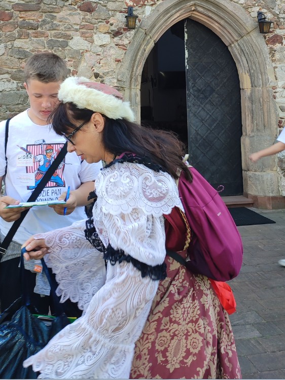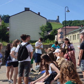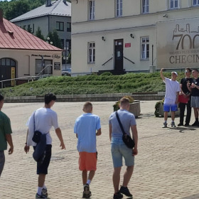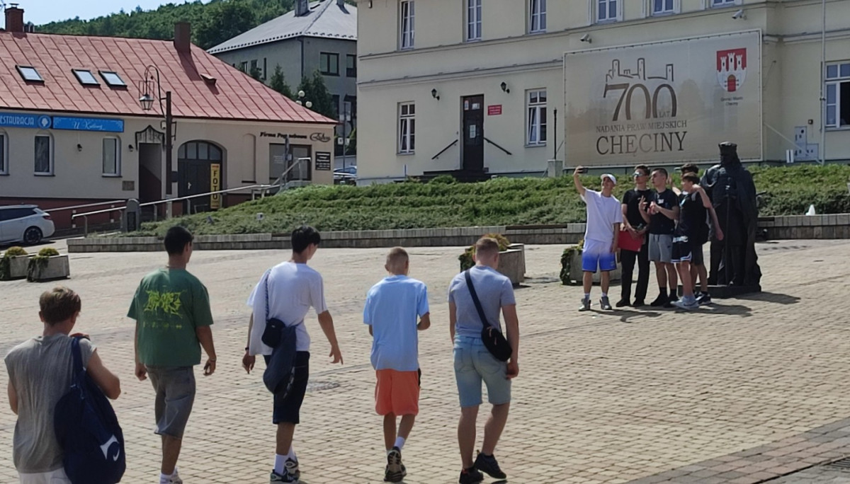 Klasa 8 b wybrała się 18 czerwca do Chęcin. Najpierw ósmoklasiści – podzieleni na grupy – zagrali w grę miejską pn. „Magiczne Chęciny”, dzięki której odkryli wiele ciekawostek na temat średniowiecznych Chęcin i Zamku Królewskiego położonego na Górze Zamkowej. Po zakończeniu gry i rozdaniu nagród uczniowie relaksowali się przy ognisku i piekli kiełbaski, chleb, a nawet jabłka. Można było również pograć w piłkę, porozmawiać, a także... wspiąć się na drzewo :)