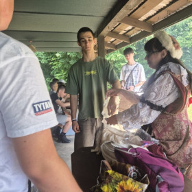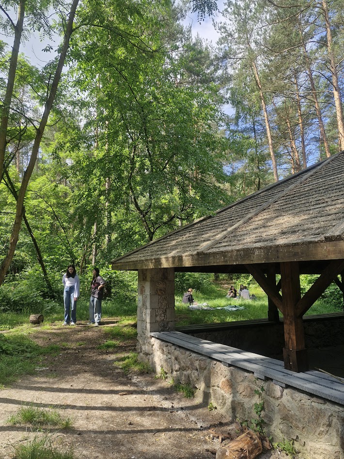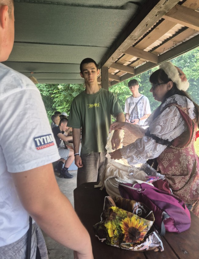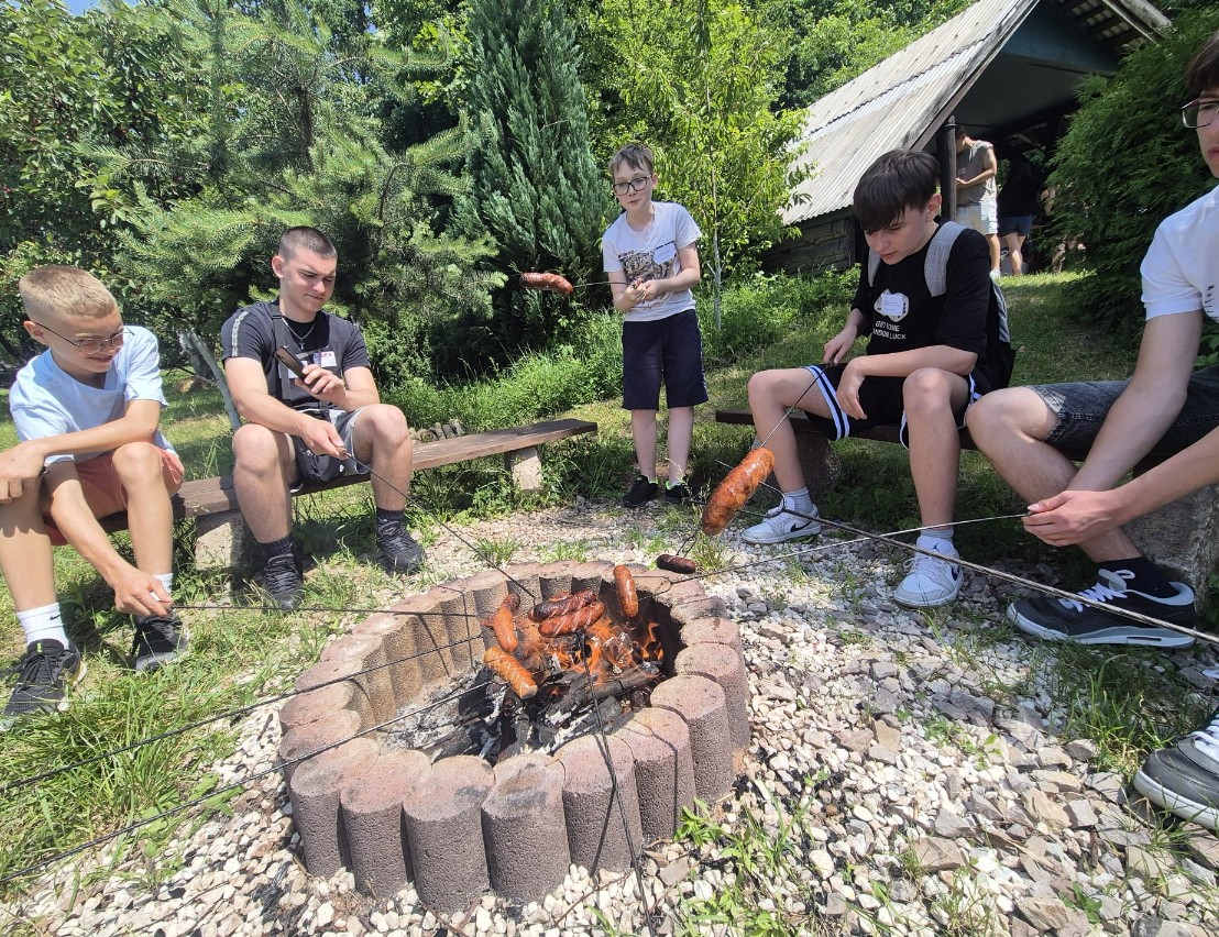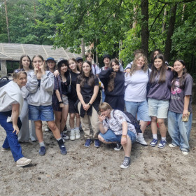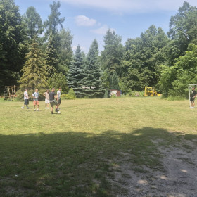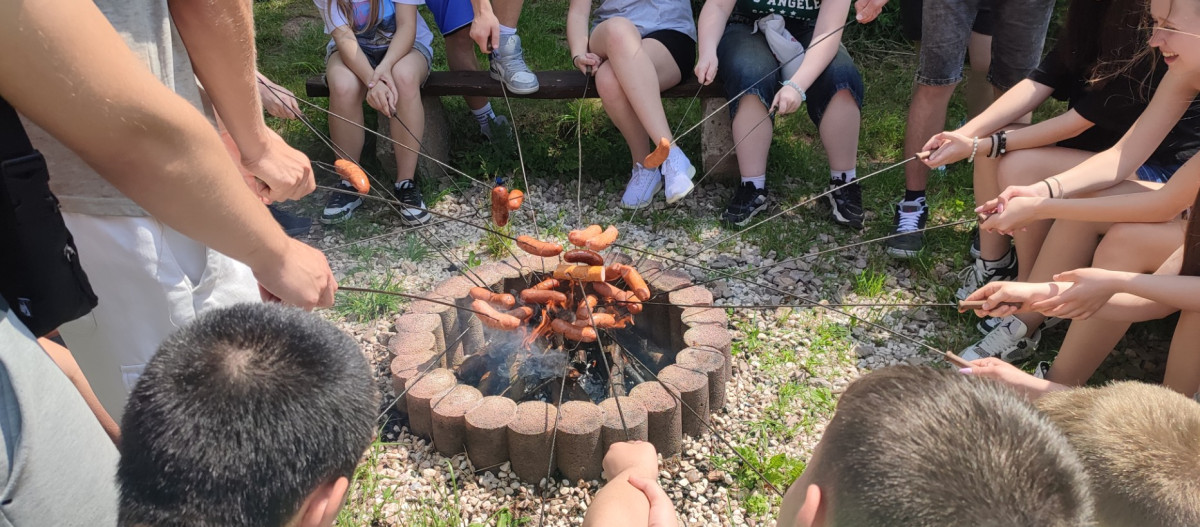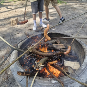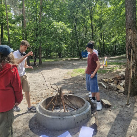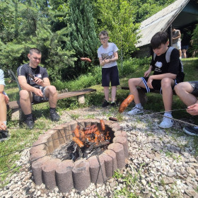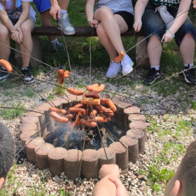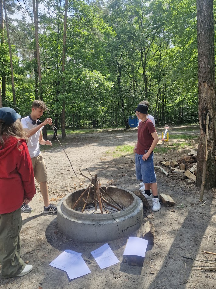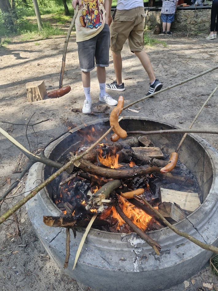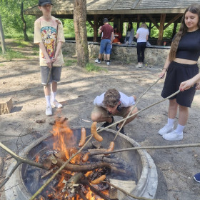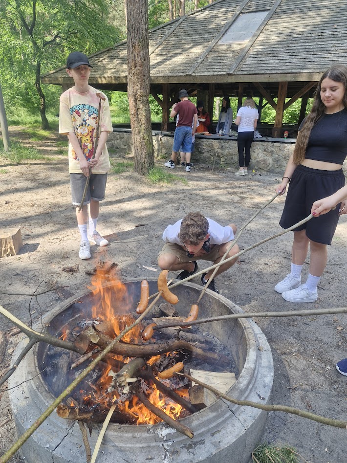 Klasa 8 a wybrała się w malownicze miejsce w Kielcach, gdzie w otoczeniu zieleni i śpiewu ptaków zorganizowała ognisko. Na dodatek - co wychowawczyni obserwowała z wielką dumą - uczniowie przygotowali je całkowicie samodzielnie. Chłopcy z zapałem ustawili odpowiednią konstrukcję z drewna, starannie rozdmuchiwali żar, a nawet strugali patyki do pieczenia, wykazując się przy tym dużą zaradnością i zaangażowaniem. Gdy ognisko się rozgrzało, wszyscy zabrali się za pieczenie kiełbasek i pianek, a te szybko znikały z patyków. Po posiłku nadszedł czas na wspólne rozmowy, gry i zabawy na świeżym powietrzu lub po prostu na wygrzewanie się w promieniach słońca :)