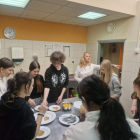 Z kolei 25 marca ósmoklasiści wybrali się do ZDZ w Kielcach, aby podczas Dnia Otwartego poznać tę placówkę. Uczniowie nie tylko zwiedzili szkołę, ale także wzięli udział w warsztatach kulinarnych i fryzjerskich oraz obejrzeli pokaz treningu judo i umiejętności strzeleckich.