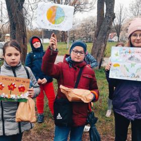 W dniu 22 kwietnia uczniowie klasy 5a czynnie uczestniczyli w obchodach Dnia Ziemi zorganizowanych przez Straż Miejską w Kielcach. Wszyscy mocno zaangażowali się w sprzątanie Rezerwatu Wietrznia i choć było zimno i pochmurno udało się zapełnić śmieciami kilkanaście worków. Akcja zakończyła się wręczeniem młodym ekologom drobnych upominków od Straży Miejskiej- ekologicznych śniadaniówek. Mamy nadzieję, że dzięki takim działaniom wszyscy będą bardziej dbać o środowisko nie tylko od święta.