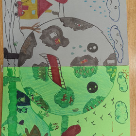 W ramach obchodów Dnia Ziemi uczniowie klas 6-8 wspólnie przygotowali plakaty, na których pokazali, w jaki sposób, na co dzień każdy może wspierać naszą planetę.