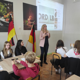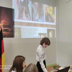 25.10.2022 w ramach Dni Języka Niemieckiego gościliśmy na warsztatach kilka szkół podstawowych: SP 2, SP 11, SP 25, SP 28 oraz SP 31. Uczniowie przygotowali prezentacje na temat wiedzy o państwach DACH. Każda grupa przygotowała również różne zadania dla słuchaczy:krzyżówki, quizy, pytania, itd. Tematy były bardzo różne: Architektura, Literatura, Malarstwo, Nobliści, Technika, Sport, Kulinaria, Moda, Samochody, każda grupa musiała przynieść ze sobą jakiś rekwizyt.Na zakończenie spotkania był przygotowany poczęstunek dla uczestników. Były również nagrody.