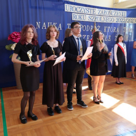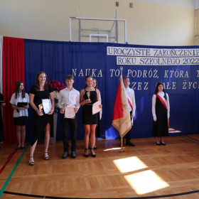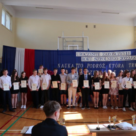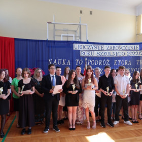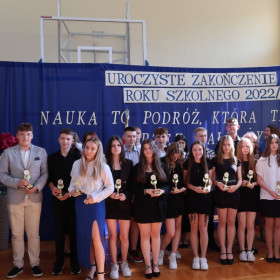 Dzięki Pani Dyrektor, pięknymi statuetkami zostali nagrodzeni uczniowie, którzy osiągnęli najlepsze wyniki w nauce oraz laureaci i finaliści konkursów przedmiotowych. Uhonorowano także uczniów uzdolnionych sportowo i artystycznie oraz wręczono dyplomy wyróżniającym się wolontariuszom Szkolnego Koła Wolontariatu.