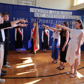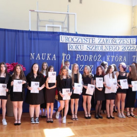 W czwartkowy wieczór w naszej szkole odbyło się uroczyste pożegnanie klas 8. Po ośmiu, a w niektórych przypadkach nawet dziewięciu latach nauki opuszczają nasze mury fantastyczni absolwenci zostawiając po sobie mnóstwo wrażeń i wspomnień.