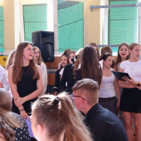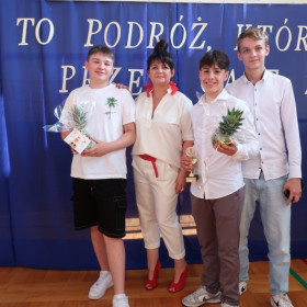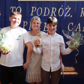 Na koniec, jury w złożone z wychowawczyń klas ósmych, przyznało nagrody specjalne, ale z przymrużeniem oka, czyli "Ananasy z naszej klasy". Dla starszych kolegów, na pożegnanie, wystąpiła Pola Mojecka, uczennica klasy 6b, która wykonała niezwykle efektowny taniec na szarfach oraz duet wokalny Blanka Kowalik i Amelia Schodnik z klasy 5b. Dodatkowo, absolwentki naszej szkoły zaśpiewały dla wszystkich kultową już piosenkę "Ostatni raz z moją klasą".