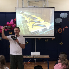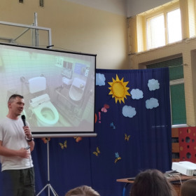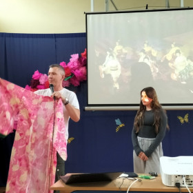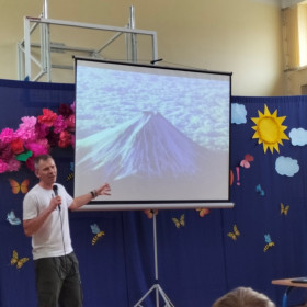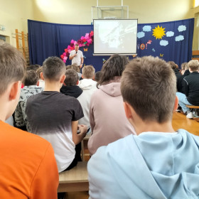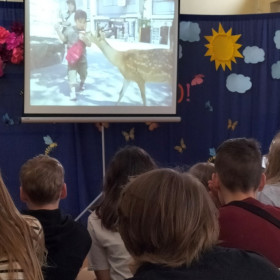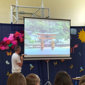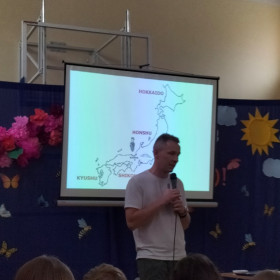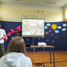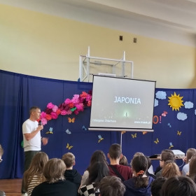 Uczestnicząc w spotkaniu z naszym przewodnikiem mieliśmy okazję poznać Japonię. W trakcie spotkania podróżnik opowiedział nam o jednym z największych miast świata - Tokio oraz podzielił się nami wrażeniami po nocach spędzonych w kapsułowych hotelach. Podróżnik przybliżył nam podstawy shinto - religii Japończyków. Opowiedział o Kioto - dawnej stolicy Japonii, a także o tym, kim są gejsze i jak wygląda ich życie. Przypomniał nam także historię Hiroszimy, którą zniszczył wybuch bomby atomowej. W trakcie spotkania podróżnik pokazał kilka rekwizytów przywiezionych z Japonii m.in. japonki, kimono.