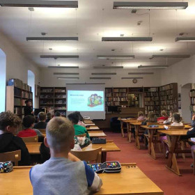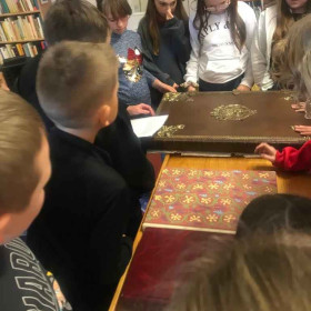 W czwartek klasa IV a wzięła udział w zajęciach zatytułowanych "Korzyści z czytania książek" w Miejskiej Bibliotece Pedagogicznej . Młodzi czytelnicy po obejrzeniu prezentacji, mogli zaprojektować okładkę własnej książki, zobaczyli również kilka niezwykłych dzieł: największą i najmniejszą książkę, książkę ukrytą w butelce czy też paskowy tomik poezji. Była to niezwykle ciekawa lekcja.