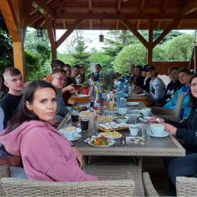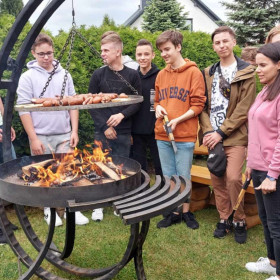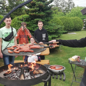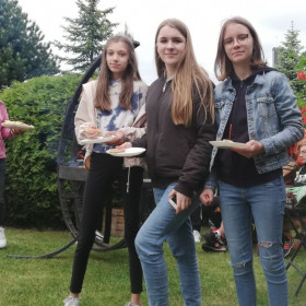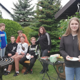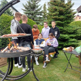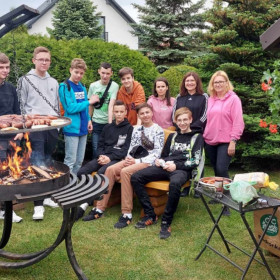 Nasi rodzice włączyli się także w organizację kolejnej wyprawy klasy 8 b – tym razem do Domaszowic. 27 maja Państwo Marta i Mariusz Rzędowscy zaprosili nas do siebie na grilla, dzięki czemu mogliśmy wreszcie odpocząć po trzech dniach egzaminu ósmoklasisty. Pani Marta Rzędowska i Pani Agata Niebudek, a także dziewczynki z klasy 8 b przygotowały mnóstwo pyszności, natomiast chłopcy piekli kiełbaski. Mieliśmy w końcu okazję porozmawiać, pośmiać się i pograć w ulubione gry.