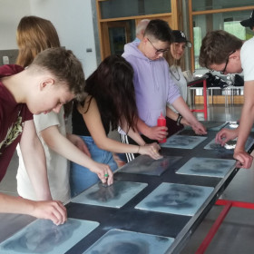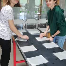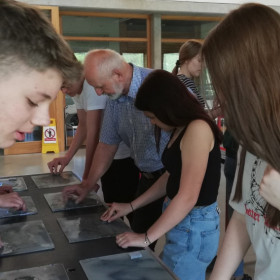 Wśród uczniów 8 b nie brakuje pasjonatów wiedzy o minerałach Ziemi Świętokrzyskiej, więc 9 maja klasa wybrała się na warsztaty do Centrum Geoedukacji w Kielcach. Zostały one przeprowadzone dla nas przez Państwa Barbarę i Jerzego Jędrychowskich, którzy od lat propagują wiedzę na temat przeszłości geologicznej naszego regionu. Uczniowie mogli nie tylko dowiedzieć się wielu ciekawostek na ten temat, ale także zajmowali się szlifowaniem skał (czyli uczyli się wstępnej obróbki wapieni świętokrzyskich) oraz zagrali w grę edukacyjną o tematyce geologicznej przy okazji zwiedzania stałej wystawy w Centrum Geoedukacji.