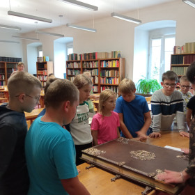 W czwartek 26 września, uczniowie naszej szkoły wybrali się do Pedagogicznej Biblioteki Wojewódzkiej w Kiecach. Klasa 4 b wzięła udział w warsztatach dotyczących korzyści płynących z czytania, zaprojektowała okładkę swojej własnej książki i obejrzała najciekawsze woluminy znajdujące się w zbiorach biblioteki m.in. książkę pisaną alfabet Braille'a i interaktywny zbiór wierszy.
