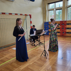 Koncert trwał godzinę lekcyjną i w tym czasie odwiedziliśmy kilka krajów związanych z piękną muzyką. Byliśmy w Anglii, Irlandii, Włoszech, Francji, Grecji, a nawet w Chinach. Dowiedzieliśmy się z jakich części składa się flet poprzeczny i wysłuchaliśmy cudownych utworów. Najbardziej przypadł nam do gustu utwór z Grecji – ZORBA, którą mogliśmy nawet zatańczyć.