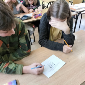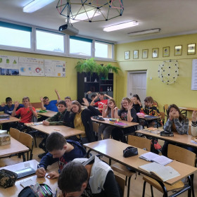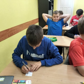 Tymczasem na lekcjach matematyki uczniowie zapoznawali się z różnymi metodami obliczania działań z tabliczki mnożenia, Uczniowie poznali m.in. różne metody liczenia na palcach, rozwiązywali ciekawe łamigłówki, a najlepsi zdobyli certyfikaty "Mistrz mnożenia". To było prawdziwe święto! :D